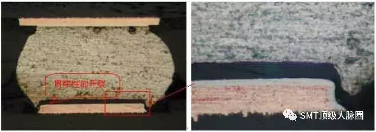 良或微裂紋是發(fā)生在焊盤和釬料相接觸的界面上;