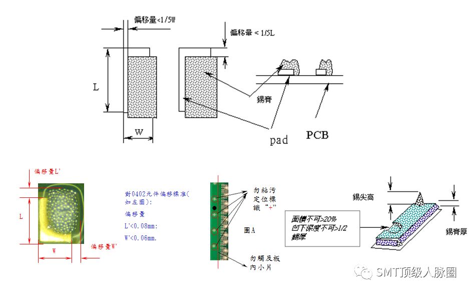 (2)偏移及短路:依照PAD位置大小,檢視錫膏偏移,不得大于1/5W或1/5L.